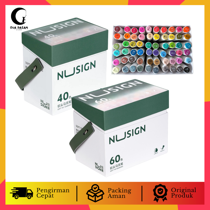 SPIDOL WARNA BRUSH 2 IN 1 DUA SISI NUSIGN SKETCH MARKER SPIDOL SKETSA DUAL TIP 40 60 80 WARNA NON TOXIC NS736