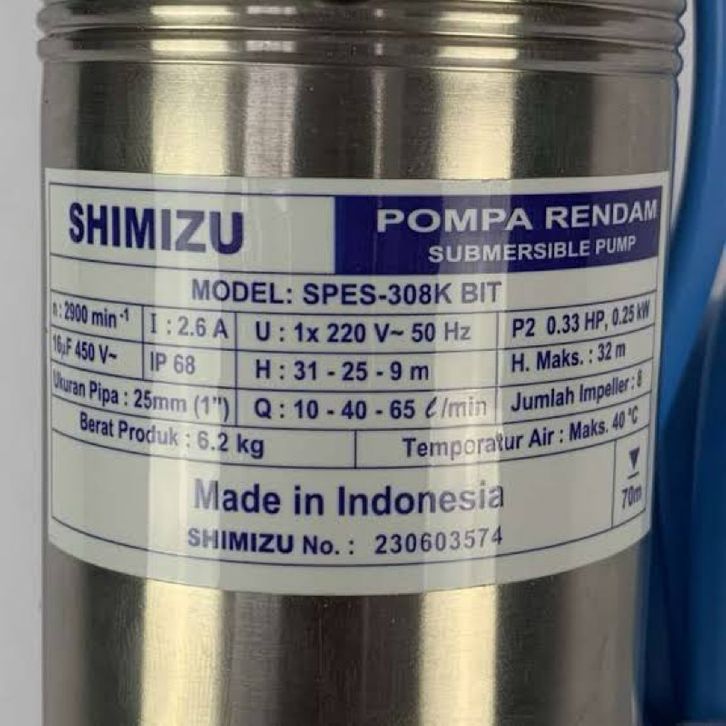 Pompa Shimizu Kabel 30 Meter 1/3Hp Shimizu Submersible Pump Eco Series Spes 308
