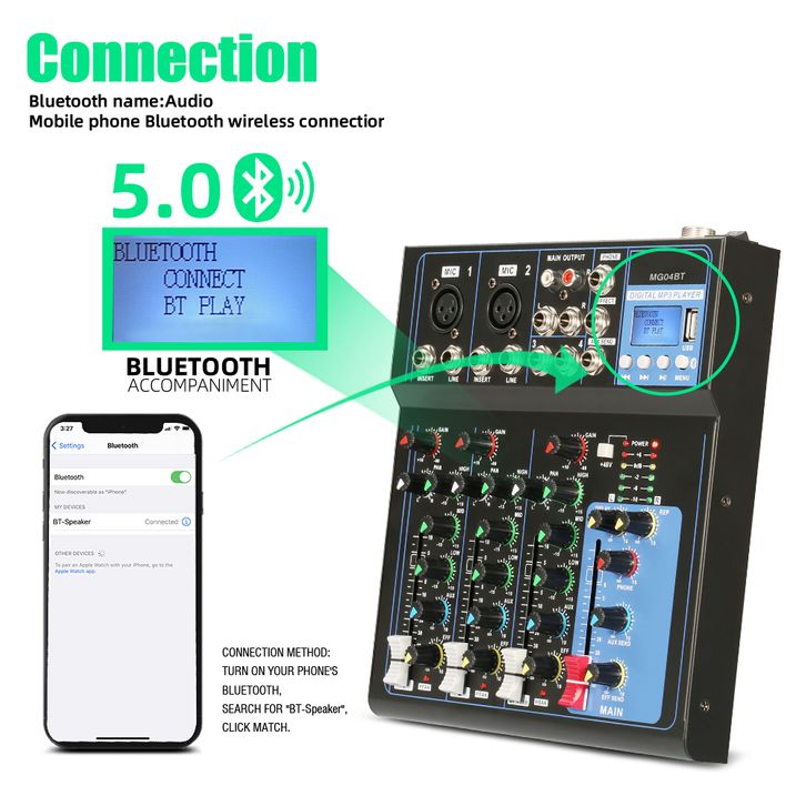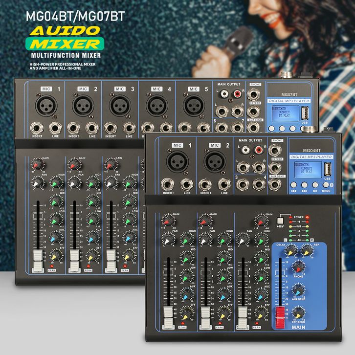 AUDIO MIXER mixer profesional 4channel/7-channel MG07BT/MGO4BT mixer Penguat sinyal USB Penguat KTV Penguat kinerja pang