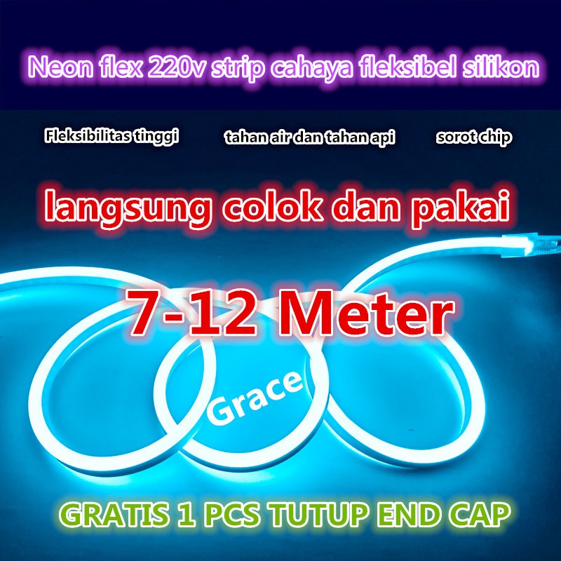 PAKET LAMPU LED NEON FLEX 220V 7-15 METER LENGKAP TINGGAL COLOK