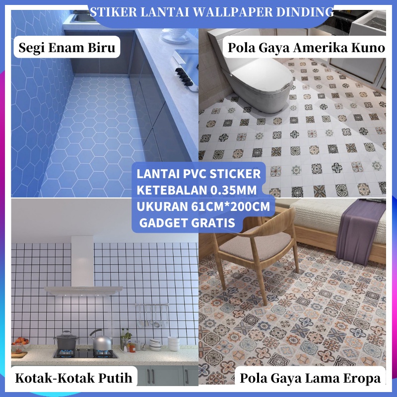 LANTAI PVC STIKER DINDING TAHAN AIR 2METER PEREKAT DIRI TOILET NON-SLIP MENEBAL STIKER DINDING STIKER LANTAI