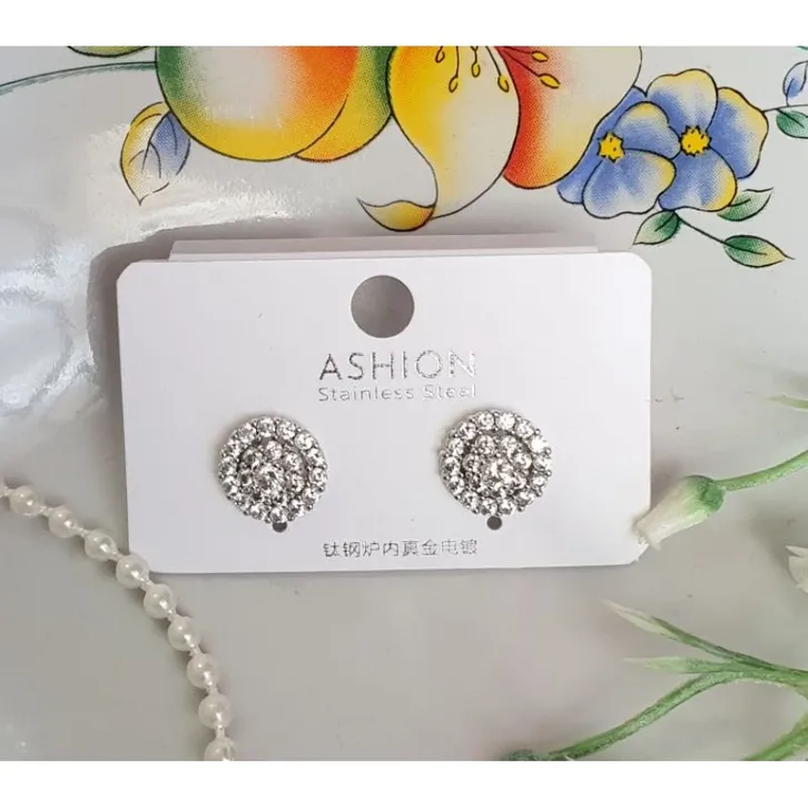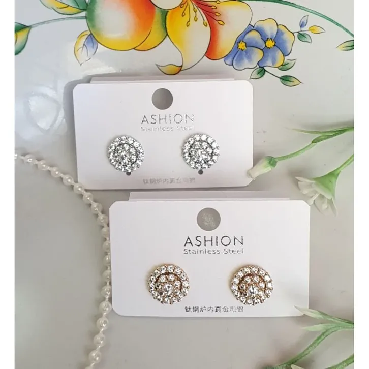Anting Titanium Tusuk Permata Tanam Sirkon Halus Premium | Titanium Antikarat Premium