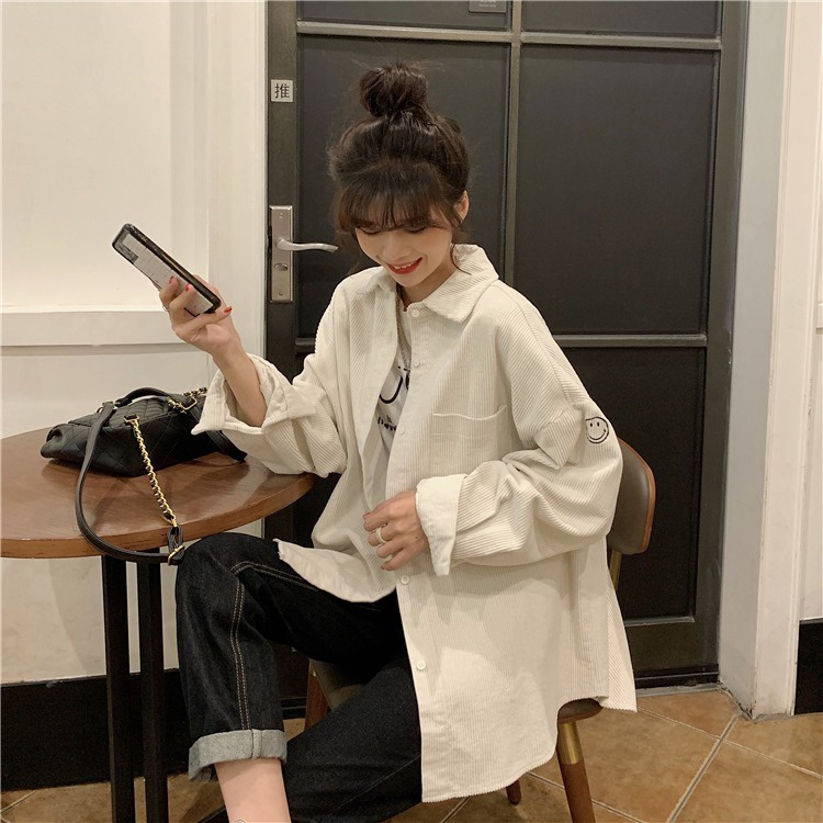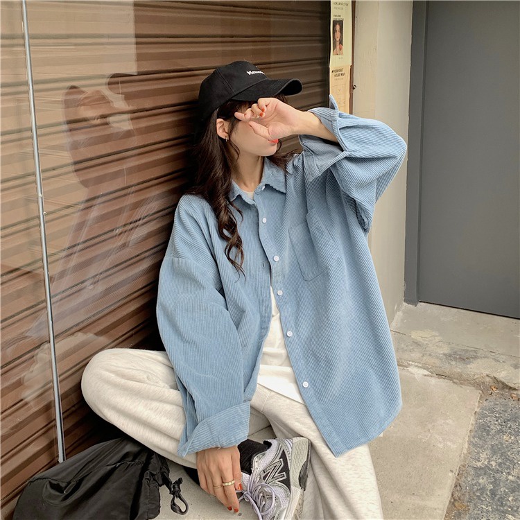 KEMEJA, KEMEJA WANITA, KEMEJA KORDUROI GAYA KOREA JAKET KEMEJA LENGAN PANJANG LONGGAR