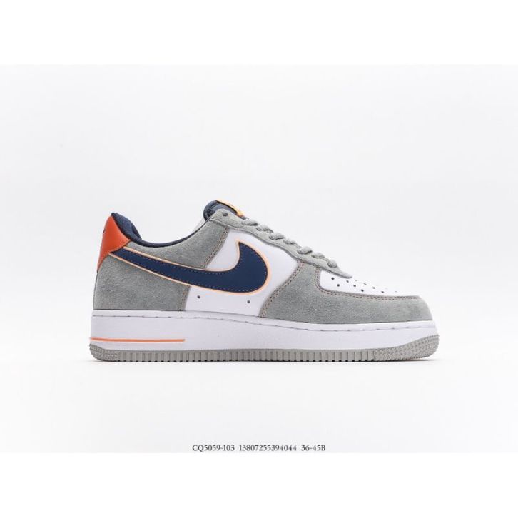 sepatu pria Nike Air Force 1 07 Low White Grey Navy Blue Orange BNIB Authentic