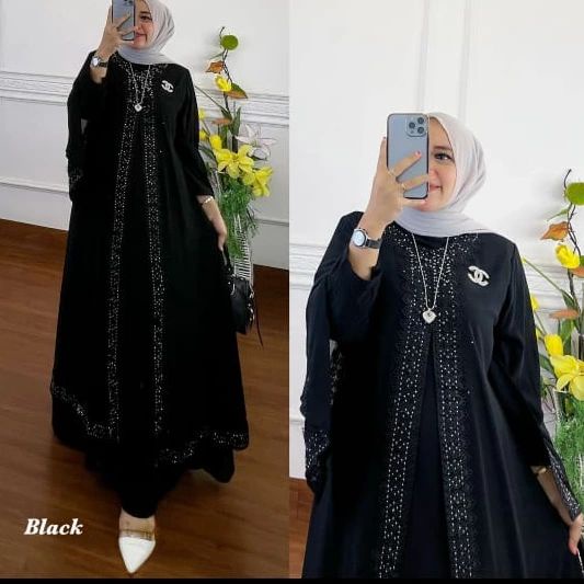 NISA ARABIAN ABAYA / SALWA DRESS / GAMIS KONDANGAN CERUTY BABYDOLL FULL PURING / DRESS WANITA AKSEN RENDA