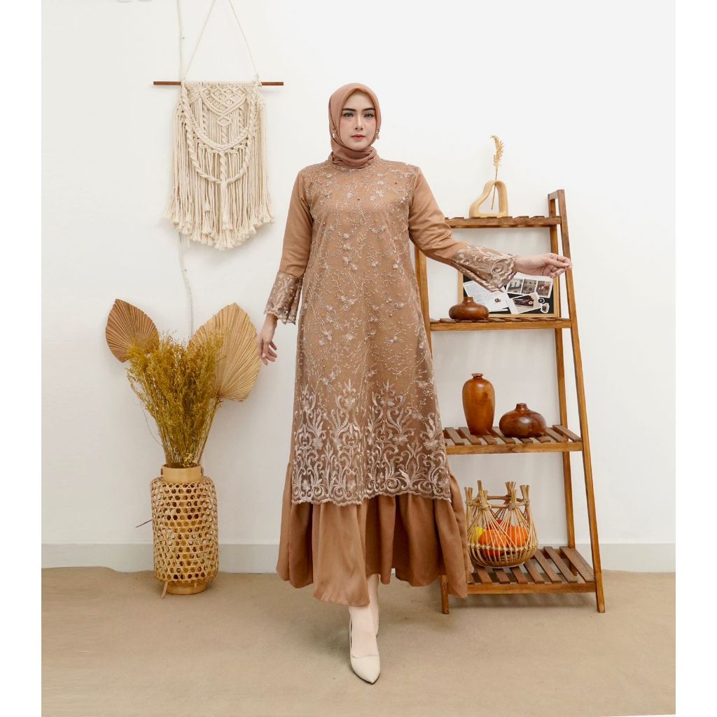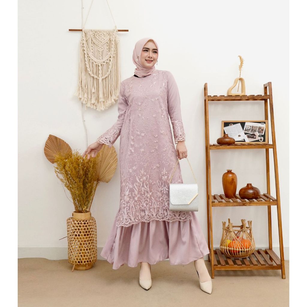 (JAMIN REALPICT) GAMIS PRAMITHA BRUKAT TILLE /SIZE S M L XL XXL XXXL JUMBO BIGSIZE / MAXI DRESS GAMIS PESTA KEBAYA