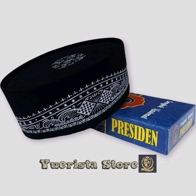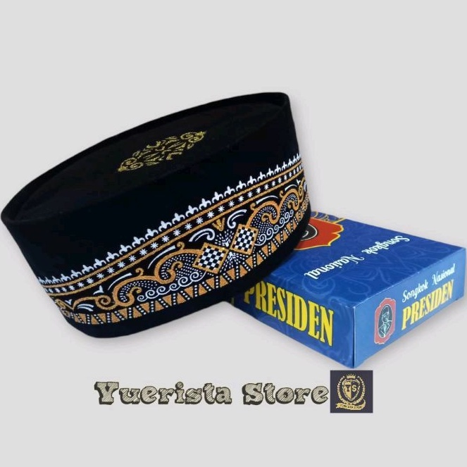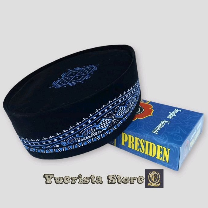 PECI SONGKOK KOPIAH HITAM MOTIF BATIK BIRU TINGGI 9CM - SONGKOK ANAK LAKI LAKI SHOLAT BISA