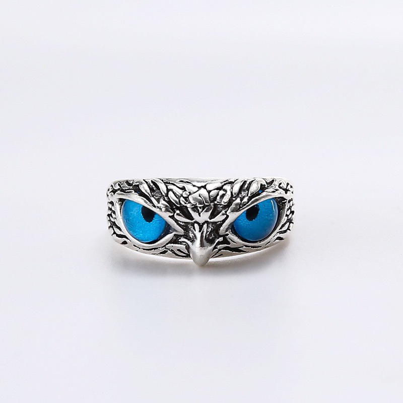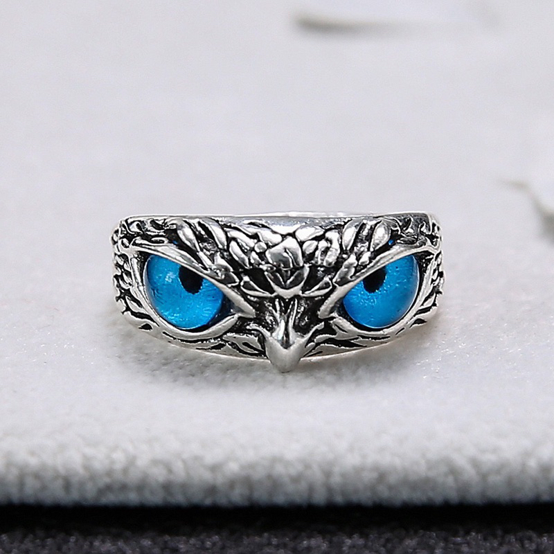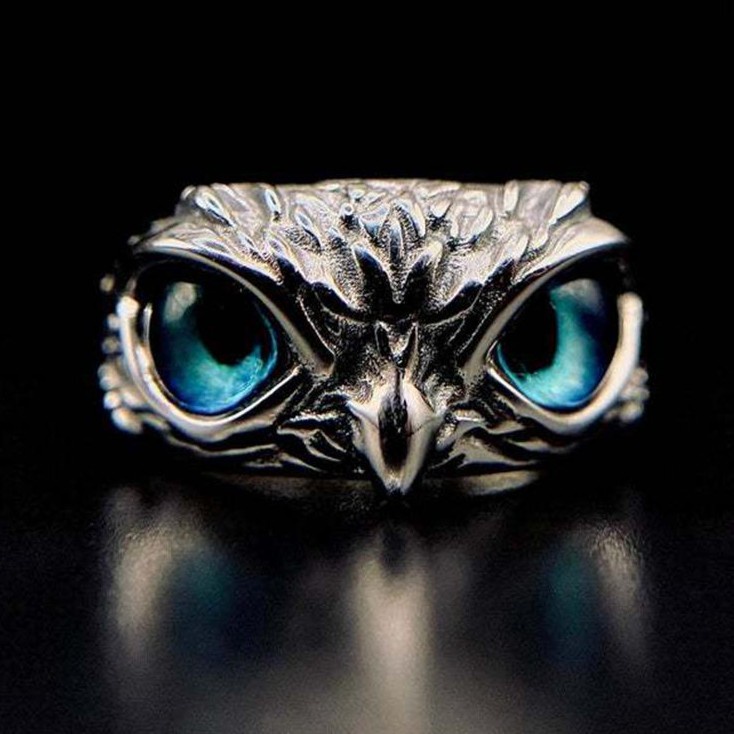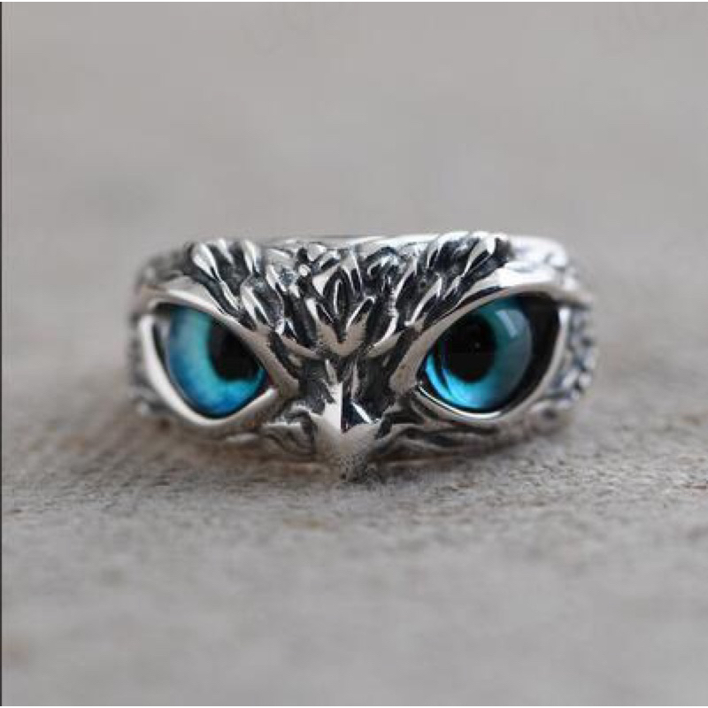 CINCIN PRIA WANITA OWL BURUNG PERAK SILVER HITAM KOREA
