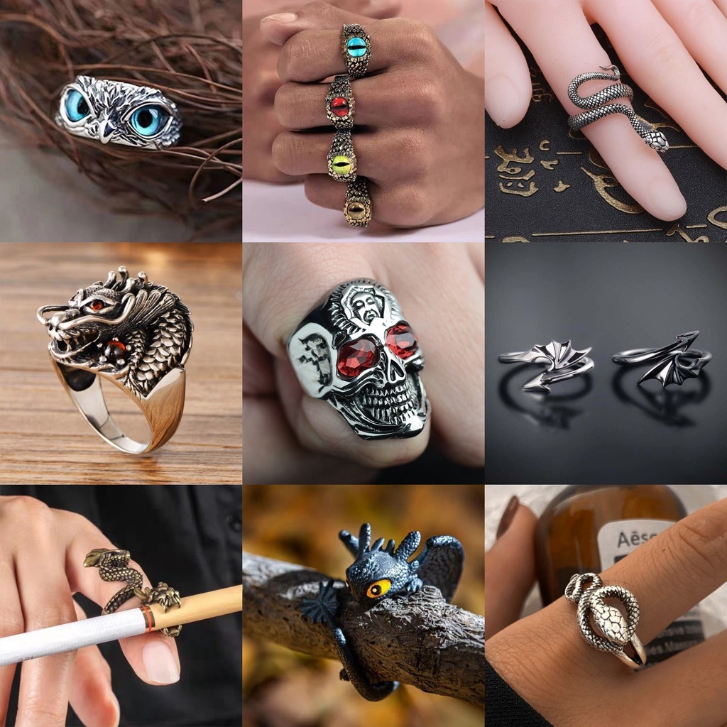 []CINCIN DESAIN TENGKORAK RUBY / BURUNG HANTU / MATA IBLIS / SAYAP IBLIS / NAGA RETRO