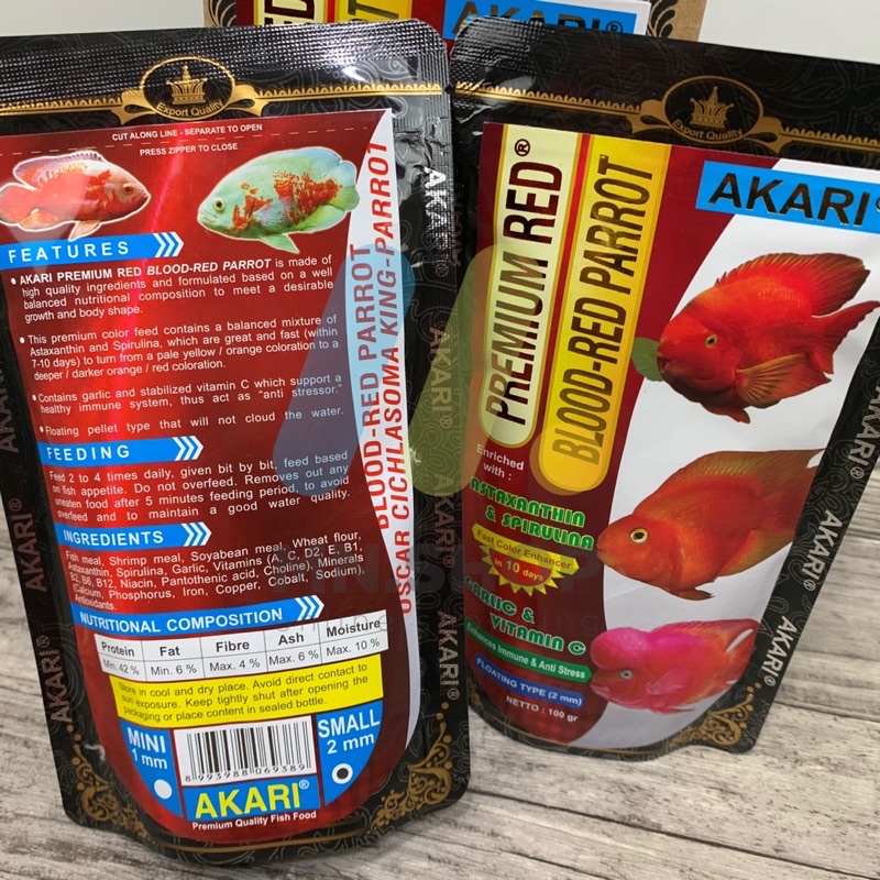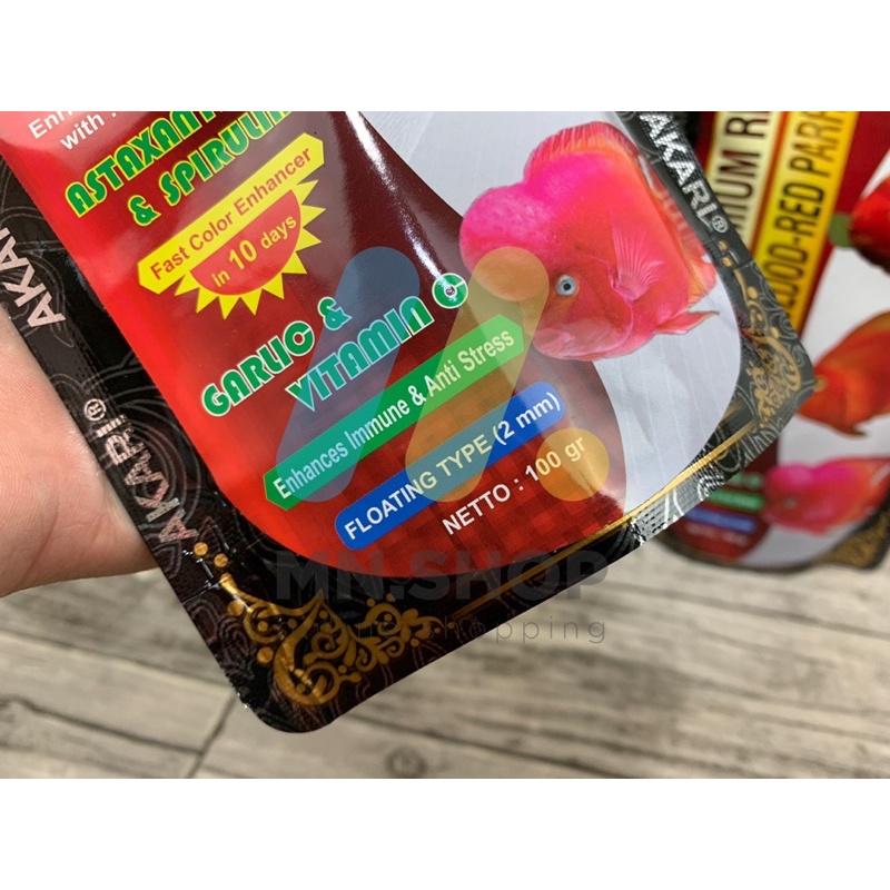 PELET IKAN PARROT AKARI PREMIUM RED BLOOD RED PARROT 100GR
