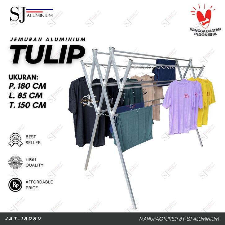 Jemuran Baju Stainless Murah / Jemuran Pakaian Hanger Gantungan Baju Lipat Tulip Silver 180 Cm