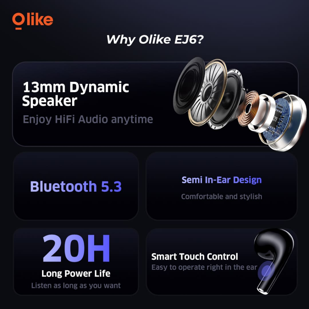 OLIKE TWS SMART TOUCH BLUETOOTH 5.3 HALF IN EAR SUPER LONG STANDBY EJ6