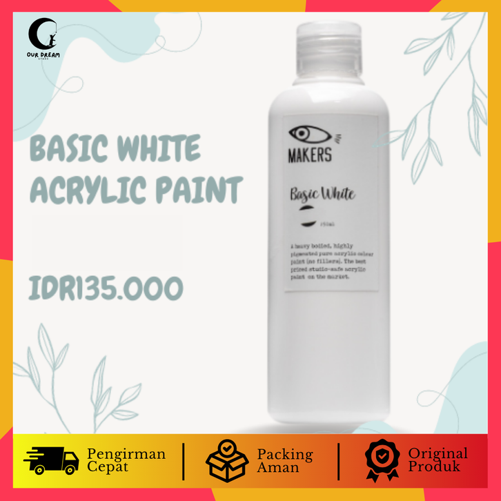 CAT LUKIS ARKRILIK PUTIH UKURAN BESAR BASIC WHITE ACRYLIC PAINT 250ML BY MAKERS | CAT AKRILIK CAT LUKIS PREMIUM