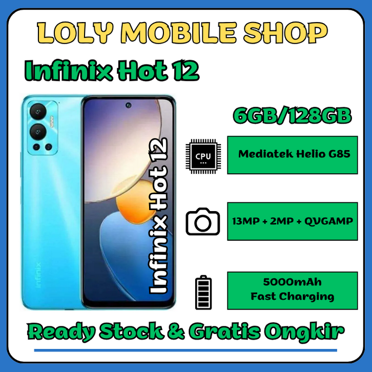Infinix Hot 12 6GB/128GB | MediaTek Helio G85 | Li-Ion 5000 mAh fast charging 18W | Garansi 12 Bulan Original