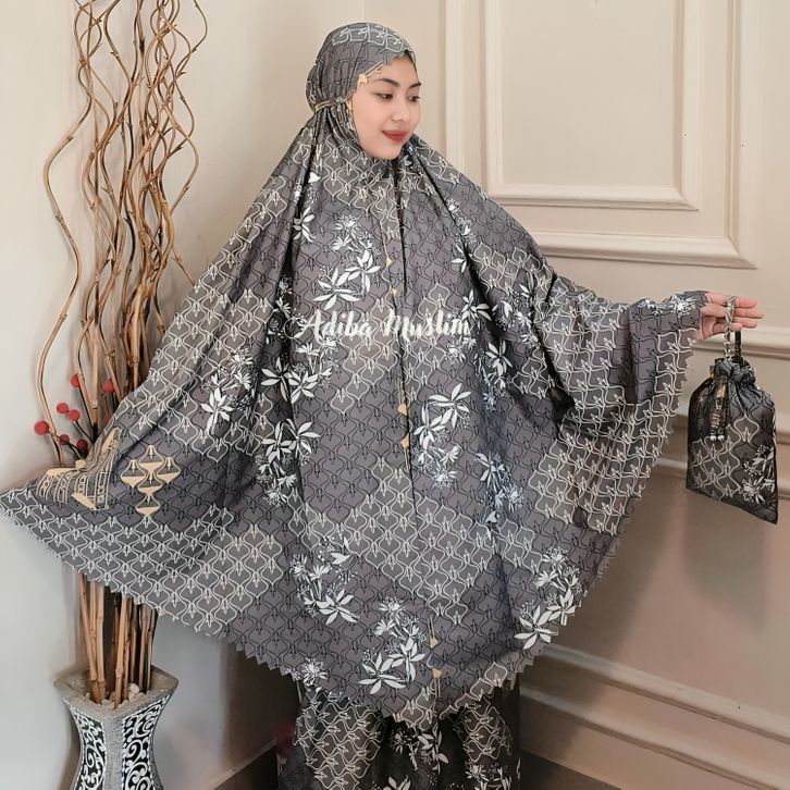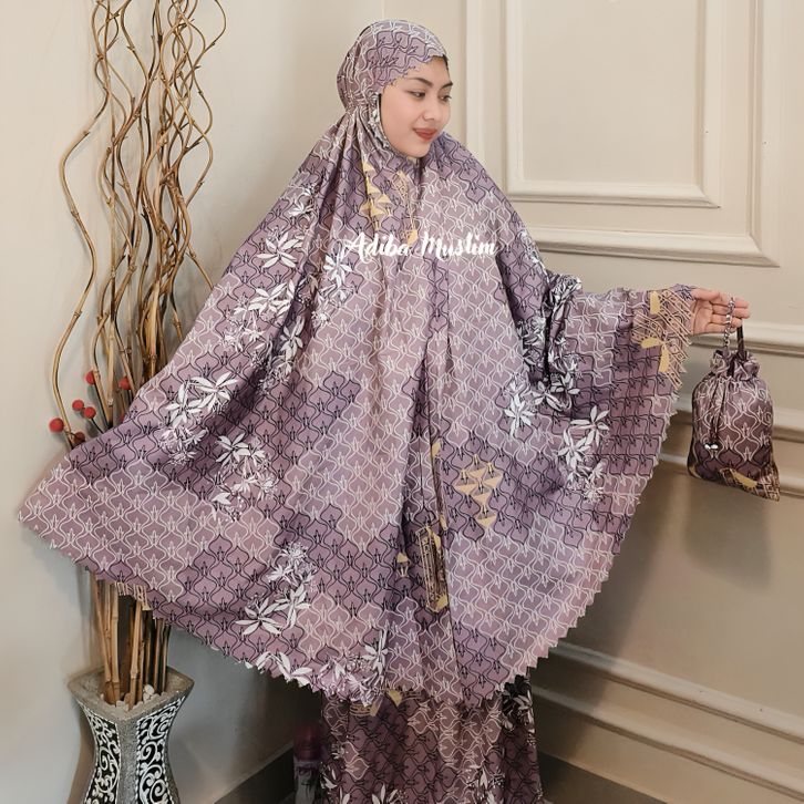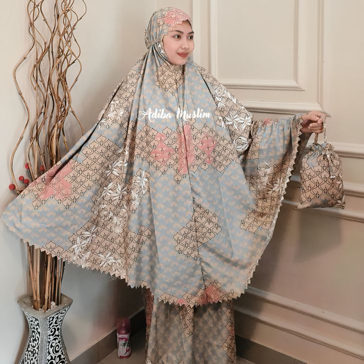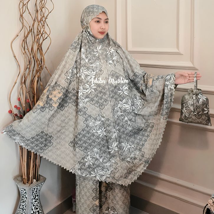 Adiba | Mukena Travel Motif Mini Pouch Terbaru Laser Cat I Mukenah dewasa terbaru 2025