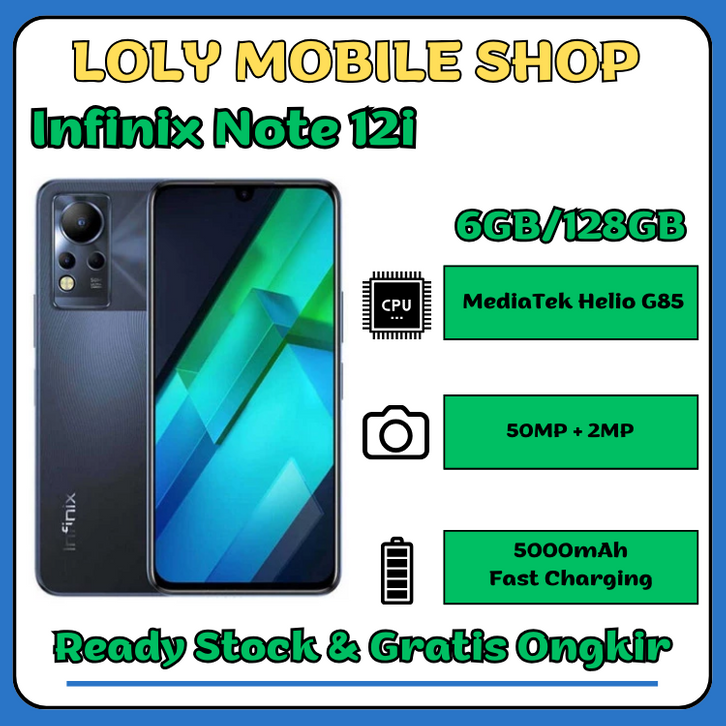 Infinix Note 12i - 6GB/128GB | MediaTek Helio G85 | 5000mAh Lithium Ion | Original Garansi Resmi 12 Bulan.