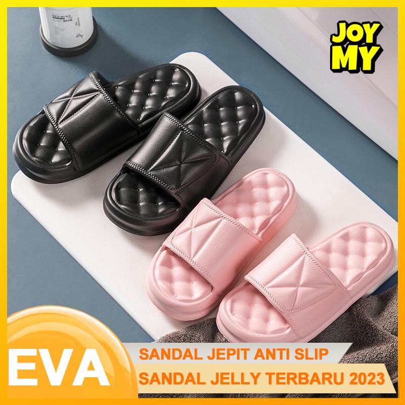 Sendal Wanita Terbaru import Jelly Karet Sandal Slop Flat Rumahan Empuk Elastis Sendal Anti Slip hitam shoes