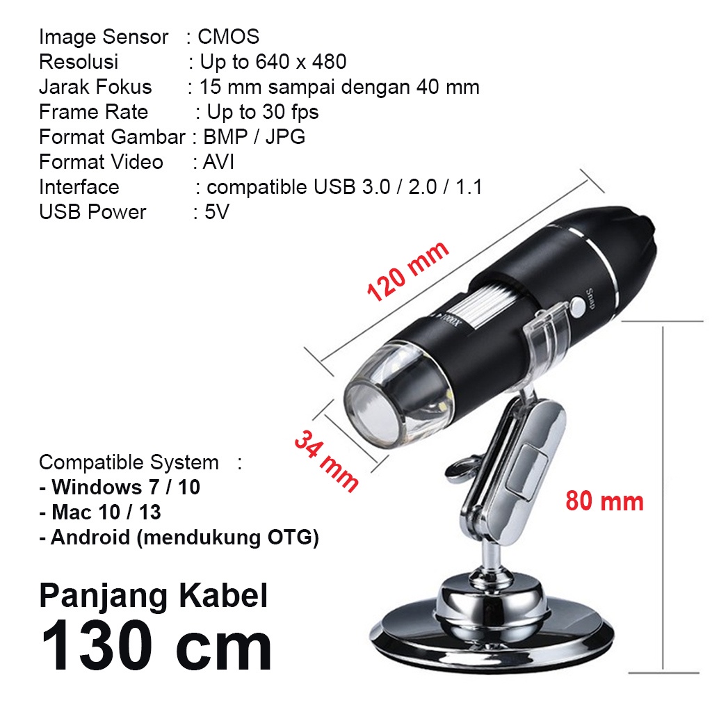 MICROSCOPE MIKROSKOP USB DIGITAL ZOOM MAGNIFIER MONOKULER KAMERA PEMBESAR ELEKTRONIK ENDOSCOPE 1600X