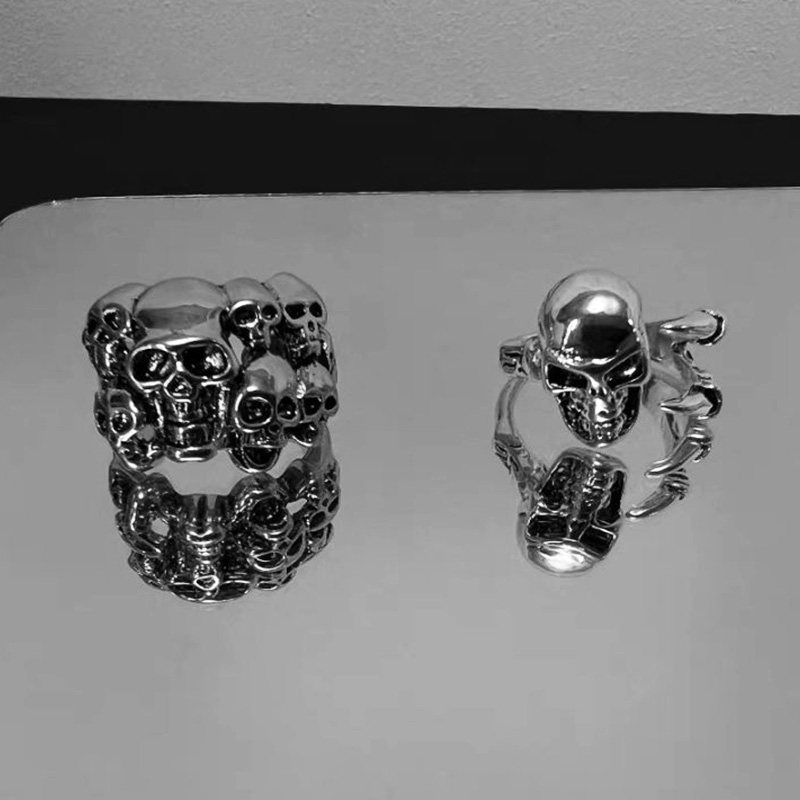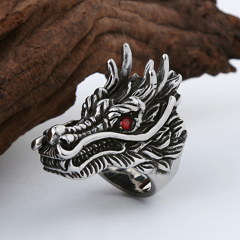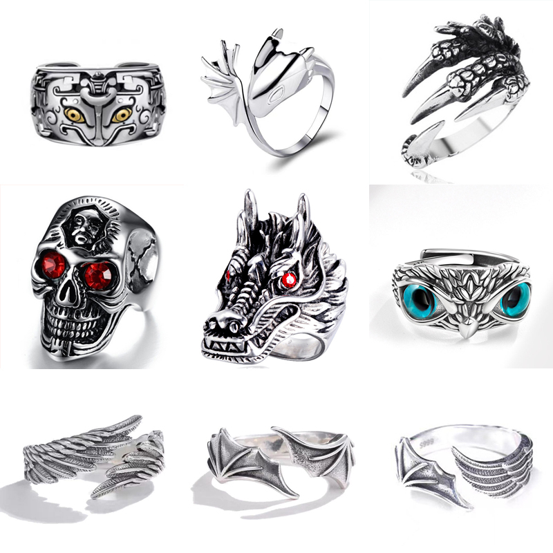 CINCIN TENGKORAK RUBY BURUNG HANTU MATA IBLIS SAYAP IBLIS NAGA RETRO GAYA PUNK VINTAGE ROCK RUBY