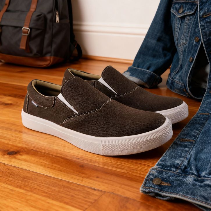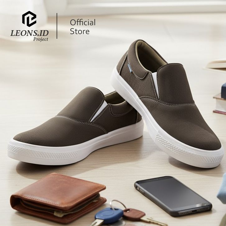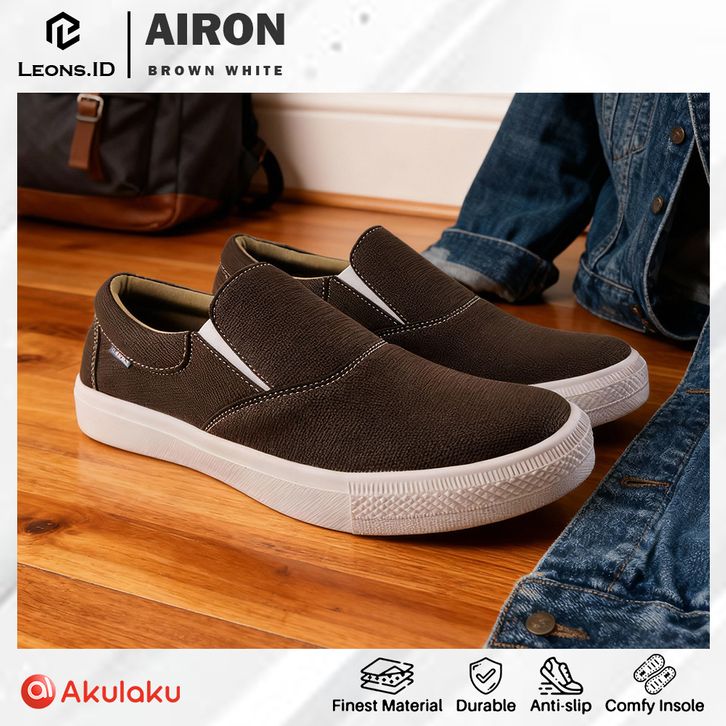 AIRON BROWN | Sairashoes - LEON | Sepatu Slip On Pria Coklat Kanvas Casual Original