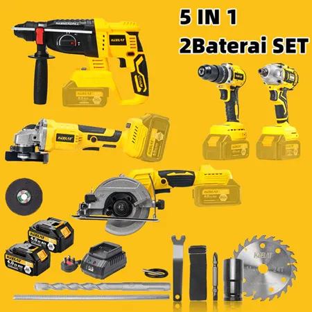 [Star] Mesin Bor Cordless Impact Wrench Impact Drill Hammer Drill Angle Grinder Same Battery in One Box Tool Set