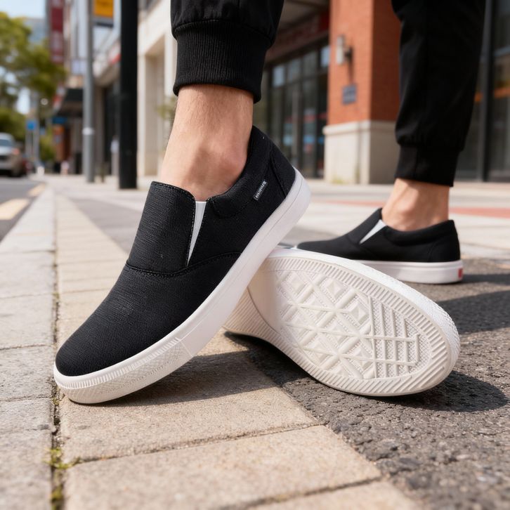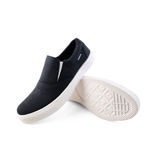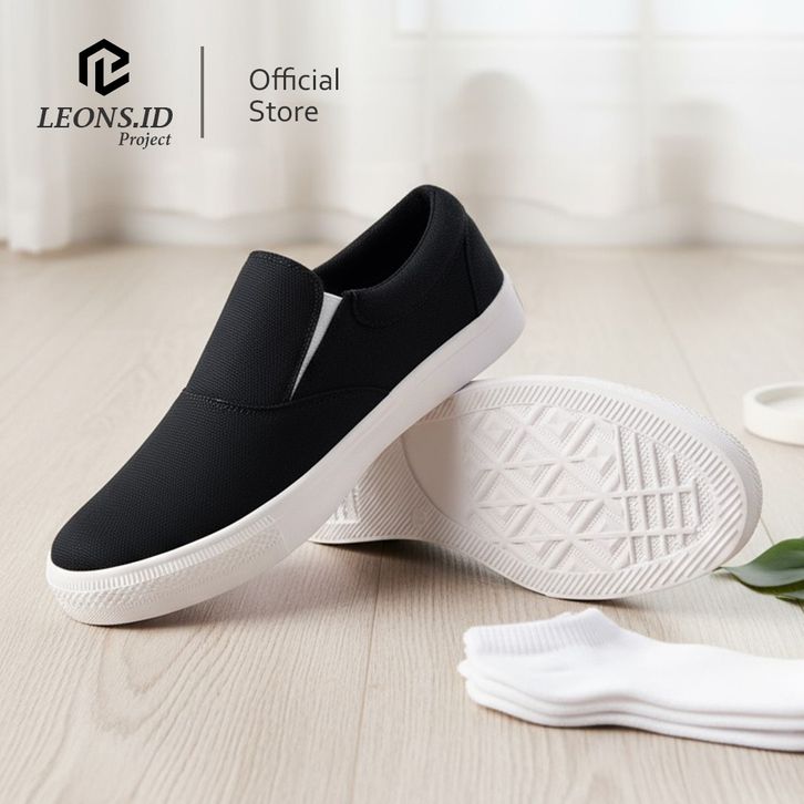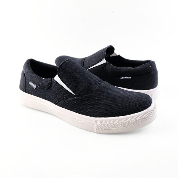 AIRON BLACK | Sairahoes - LEON | Sepatu Slip On Pria Hitam Kanvas Casual Original