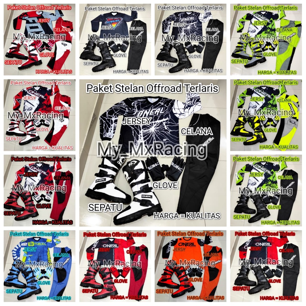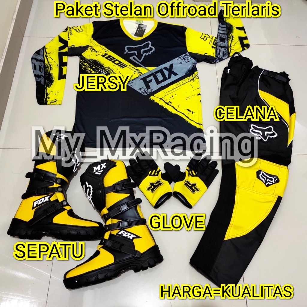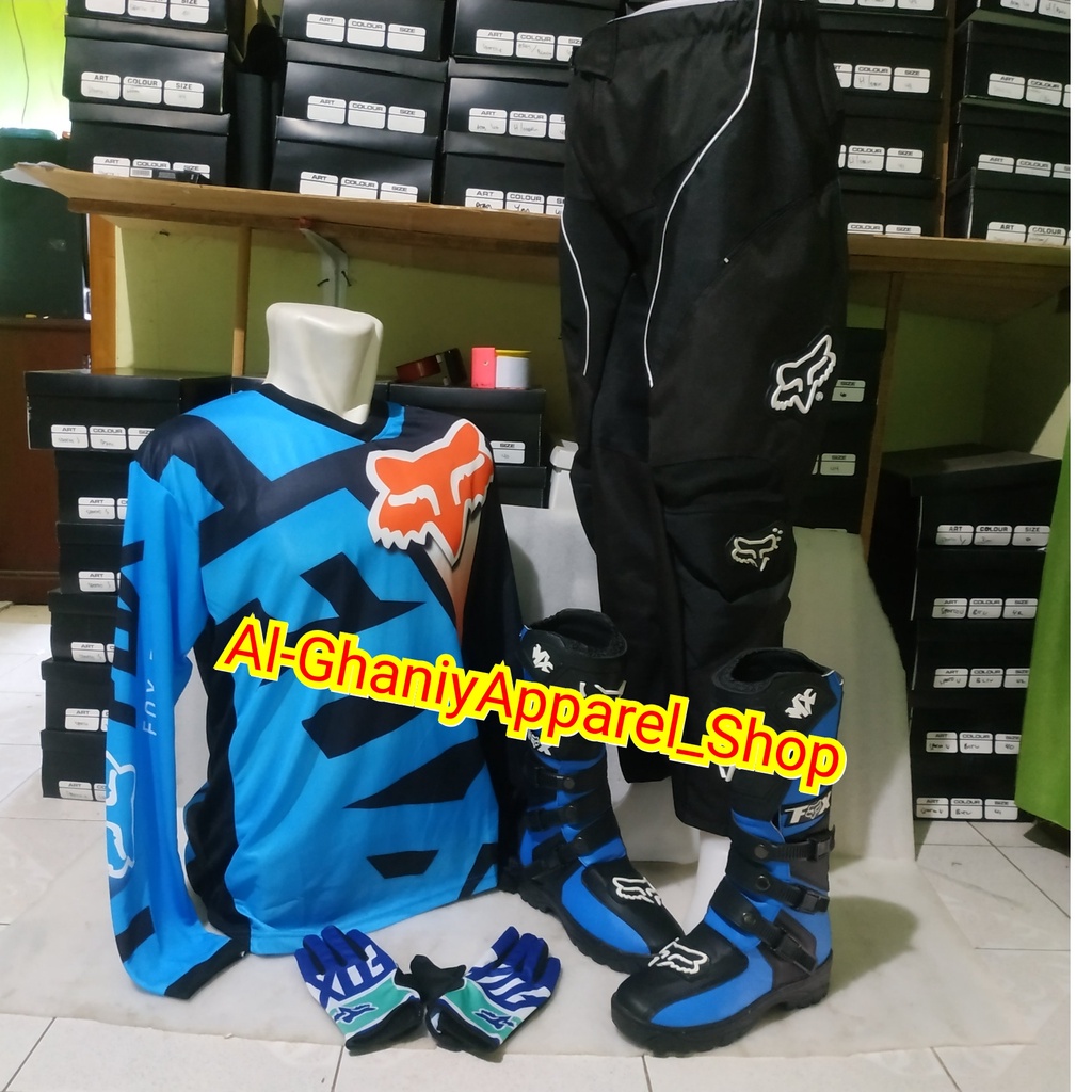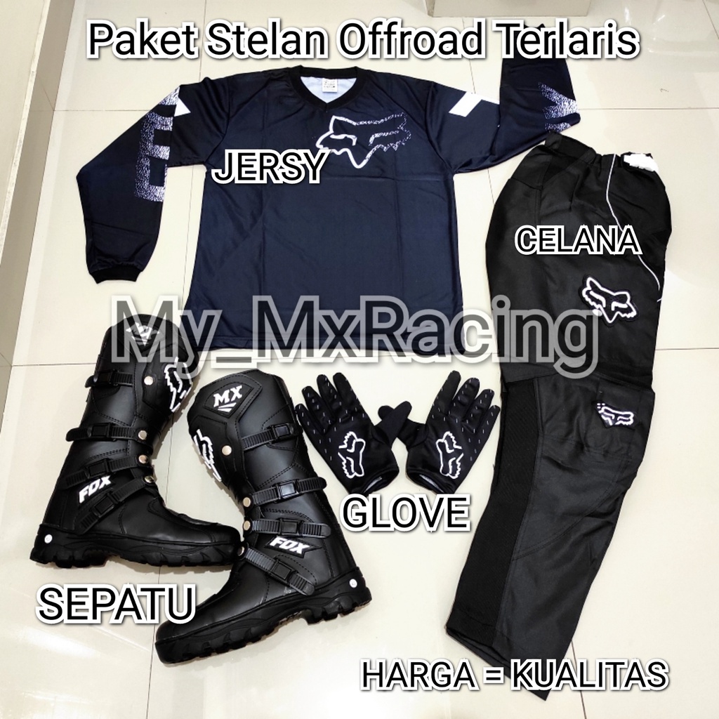 PROMO SATU SET SEPATU CROSS TRAIL JERSEY SETT DAN GLOVE PRINT TERLARIS SETELAN OFFROAD MOTOR CROSS TRAIL