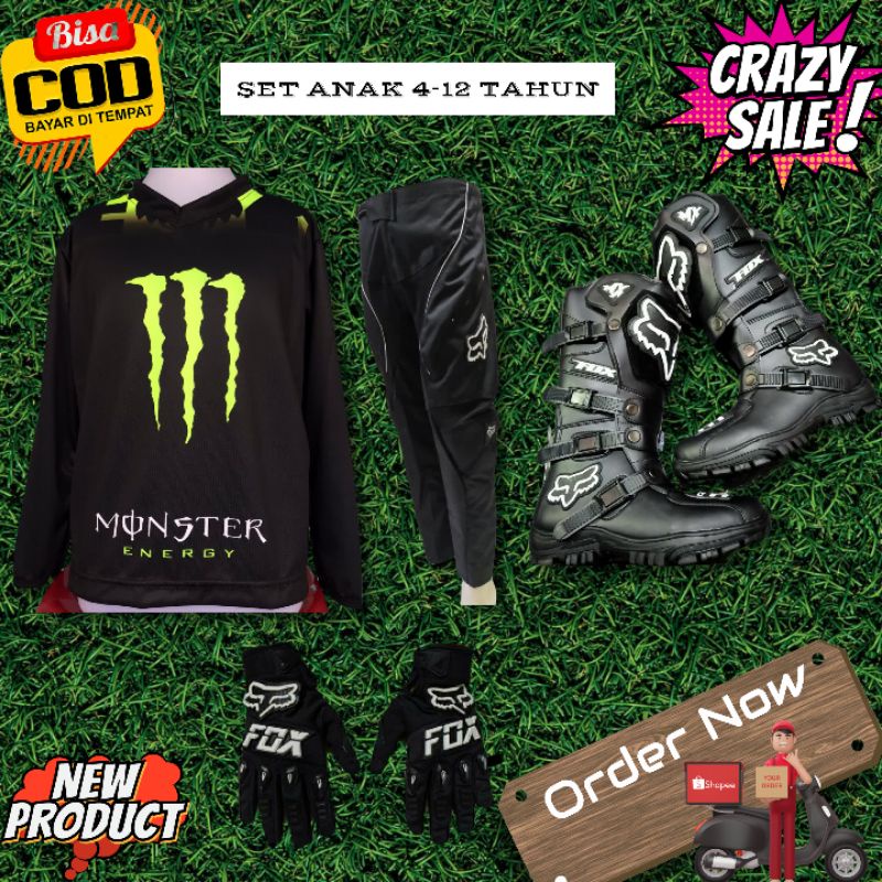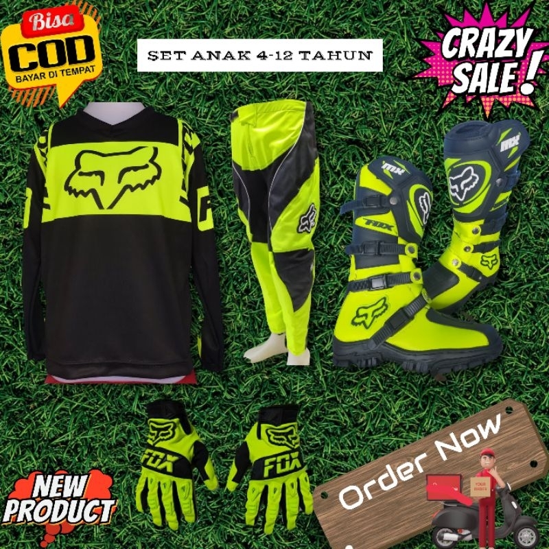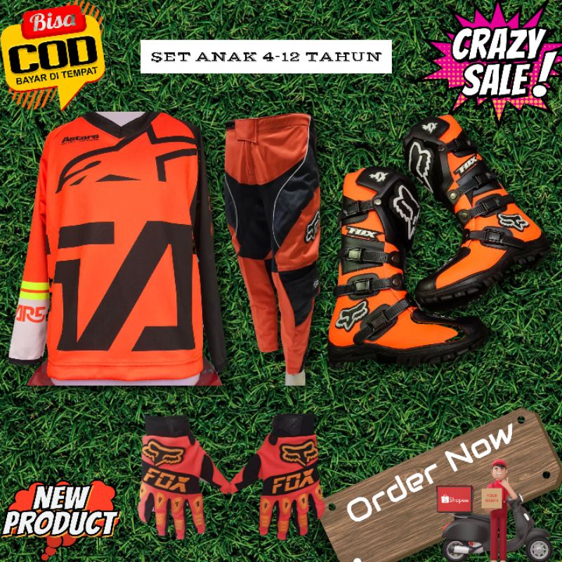 SETELAN BAJU MOTOR CROSS/BAJU SEPEDA ANAK/BAJU SET MURAH BAJU CELANA GLOVE SEPATU
