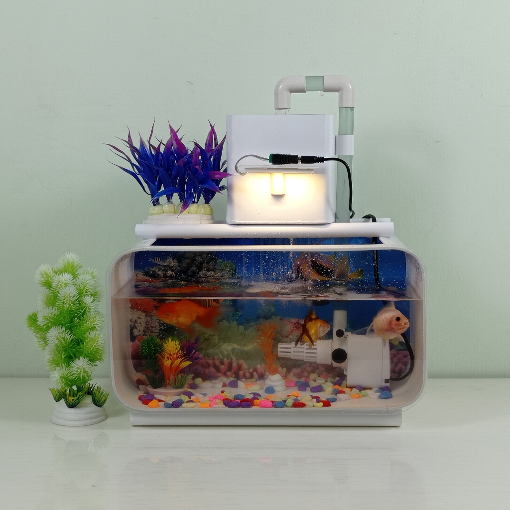 Aquarium mini akrilik ukuran besar model minimalis fullset dengan sistem filtrasi air terbaik