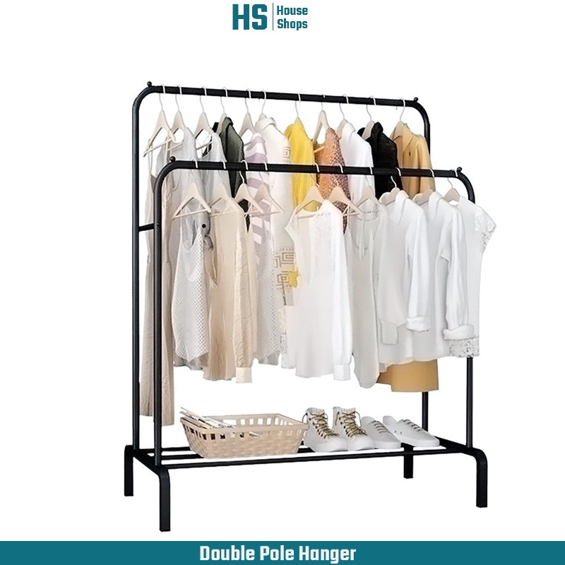 DOUBLE STAND HANGER RAK GANTUNGAN BAJU AESTHETIC GANTUNGAN PORTABLE BAJU HANGER BESI