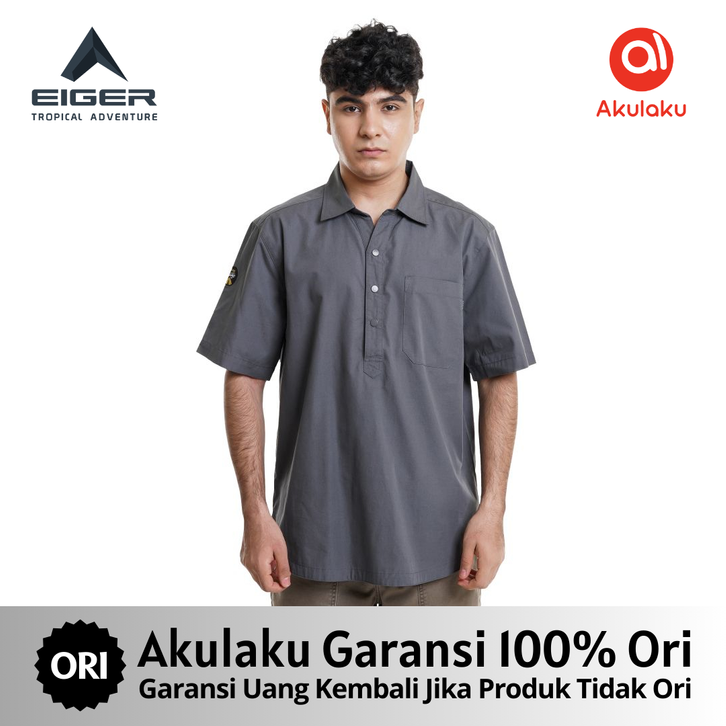 Kemeja Pria Lengan Pendek Eiger Original Warna Hijau Olive Grey Riverton