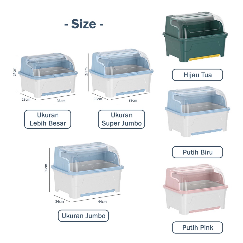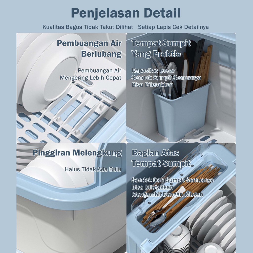 RINDU.STAR-RAK PENGERING AIR MANGKOK RAK PIRING PLASTIK DENGAN TUTUP RAK PIRING/MANGKOK/SENDOK/GARPU RAK DAPUR