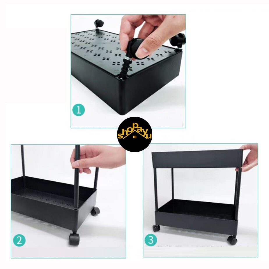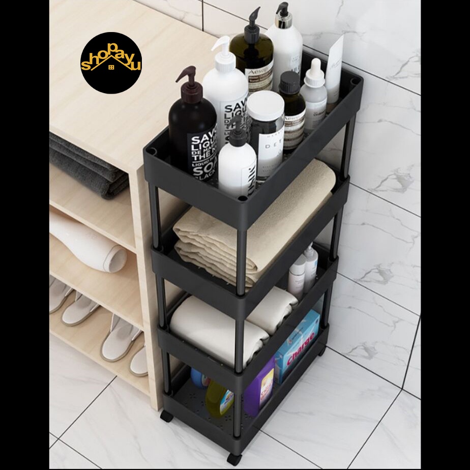 RAK TROLI SQUARE PLASTIK RAK TOILET RAK KAMAR MANDI RAK DAPUR SERBAGUNA RAK SUSUN PORTABLE RODA