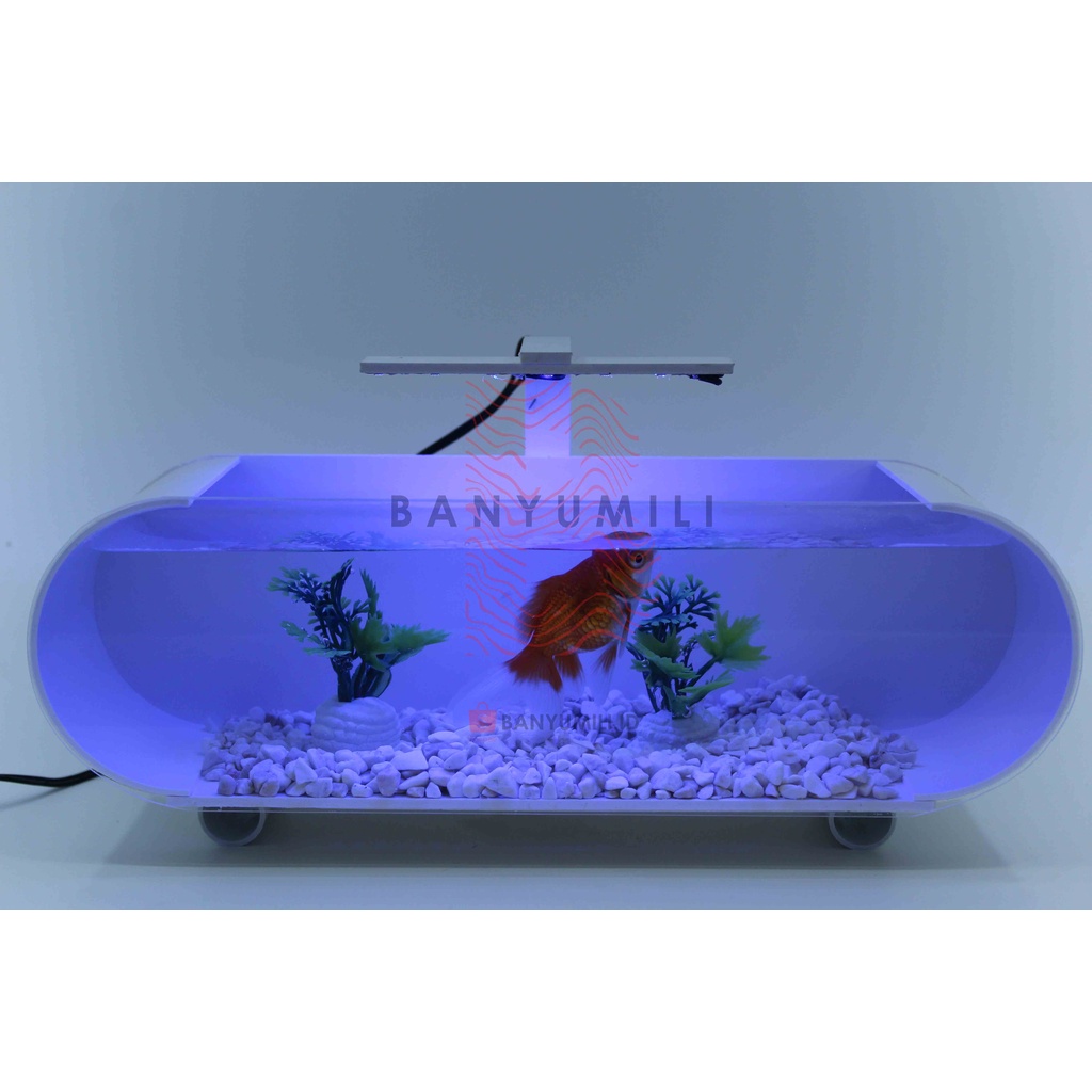 AQUARIUM / AKUARIUM MINI IKAN HIAS FULL SET , LAMPU LED + KERIKIL + TANAMAN HIAS
