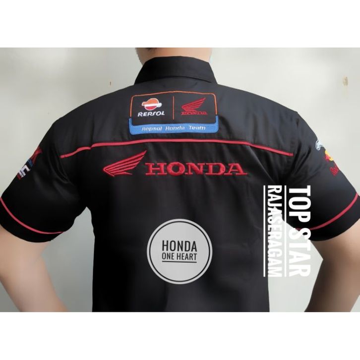 Baju Kemeja Seragam Otomotif Honda One Heart Moto GP Bordir F1 Pakaian Atasan Kerja Lengan Pendek Cowok Wanita