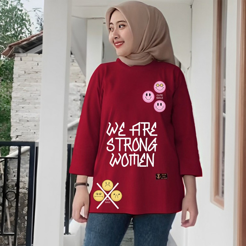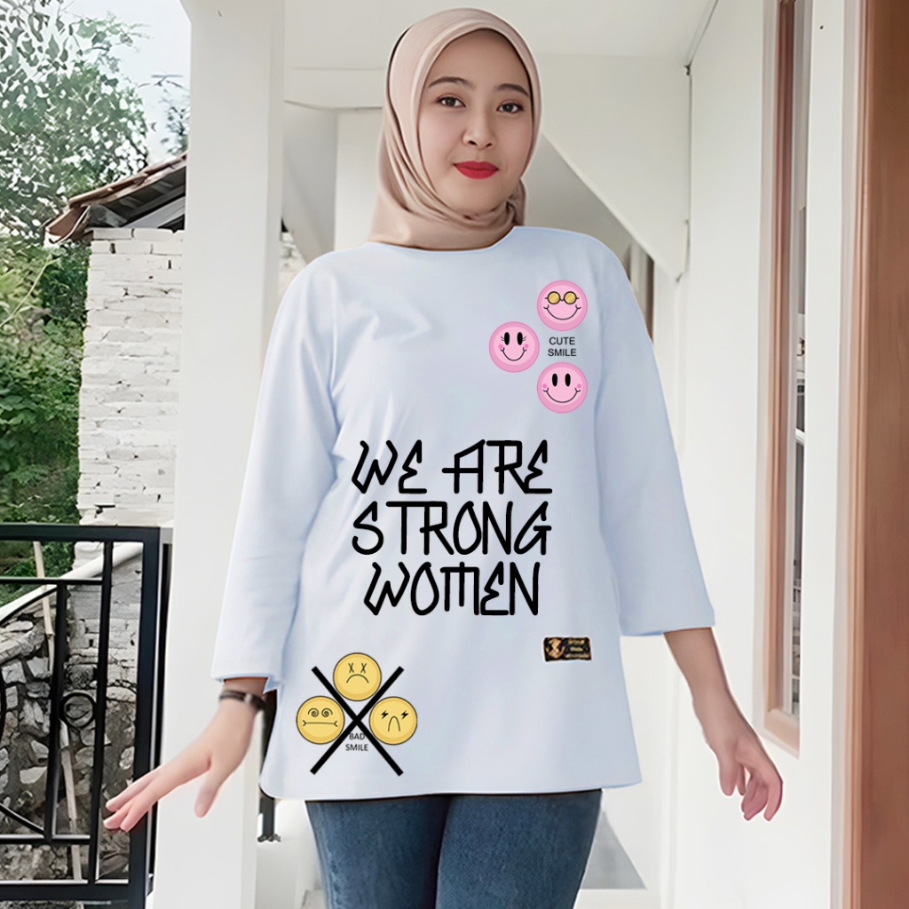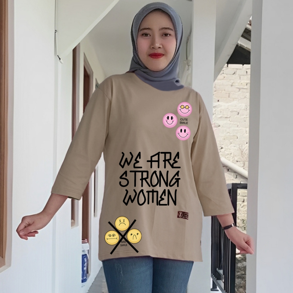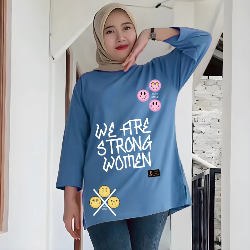Kaos Wanita Oversize Jumbo Lengan Panjang 7/8 Baju Atasan Wanita Motif Terbaru Kekinian Bahan Adem Hijab Friendly