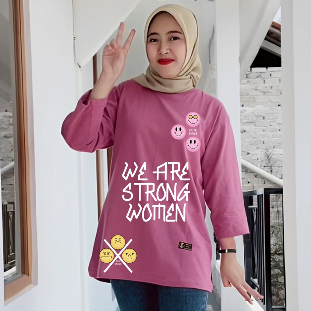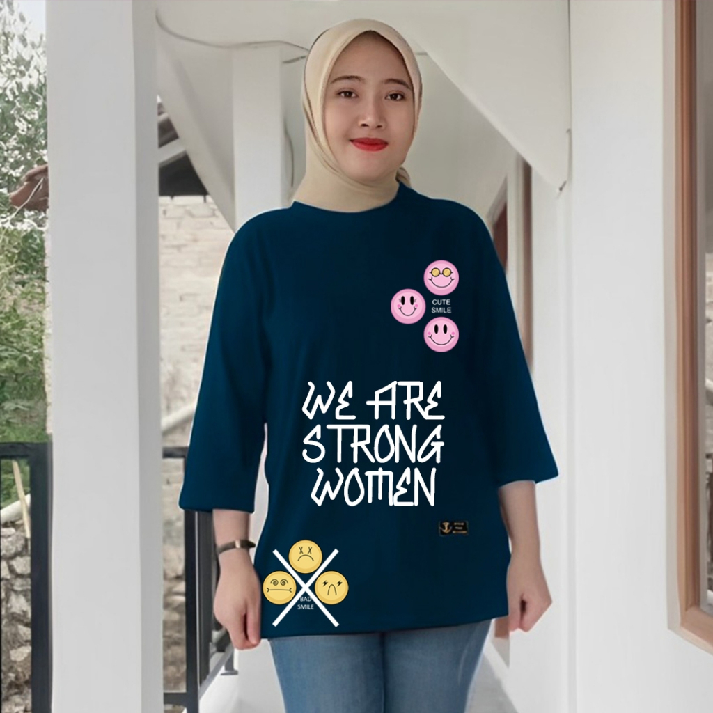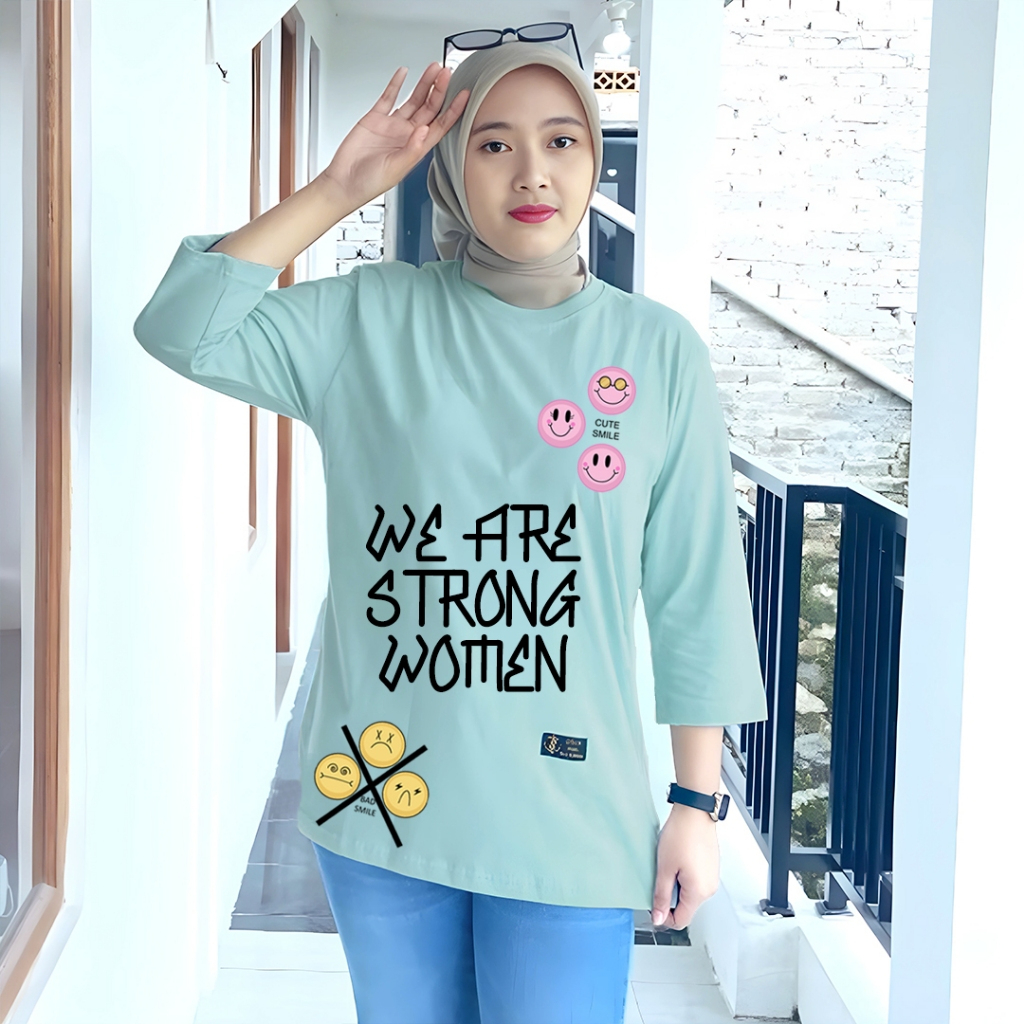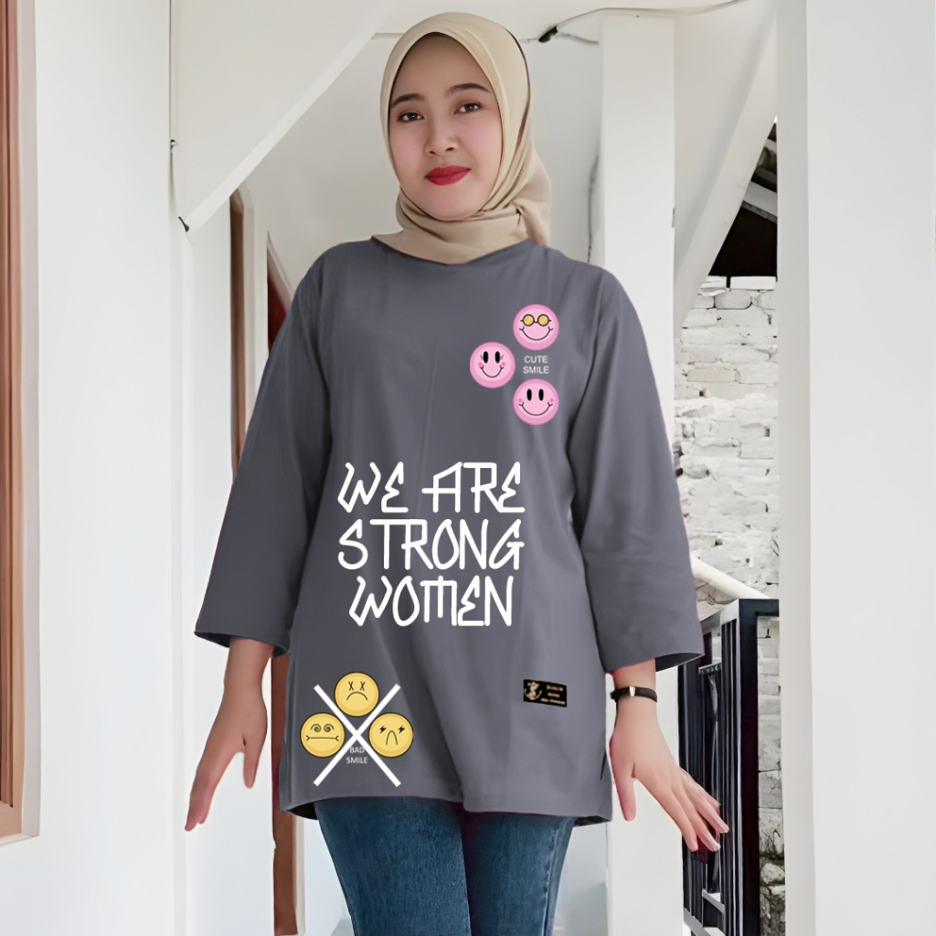 Kaos Wanita Oversize Jumbo Lengan Panjang 7/8 Baju Atasan Wanita Motif Terbaru Kekinian Bahan Adem Hijab Friendly