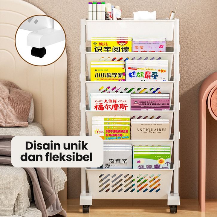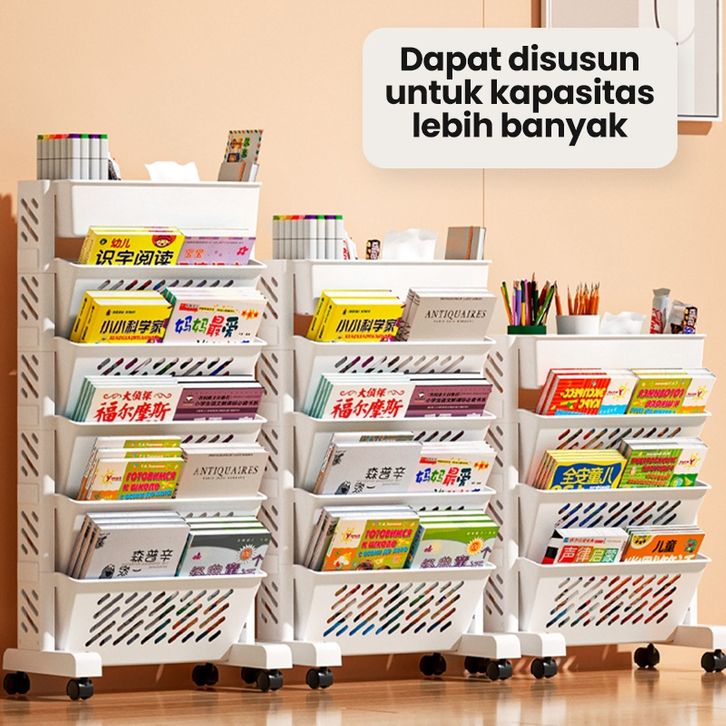 RAK BUKU RODA TROLI RAK SUSUN DOKUMEN PENYIMPANAN ALAT KANTOR DEKSTOP ORGANIZER TEMPAT FILE SERBAGUNA