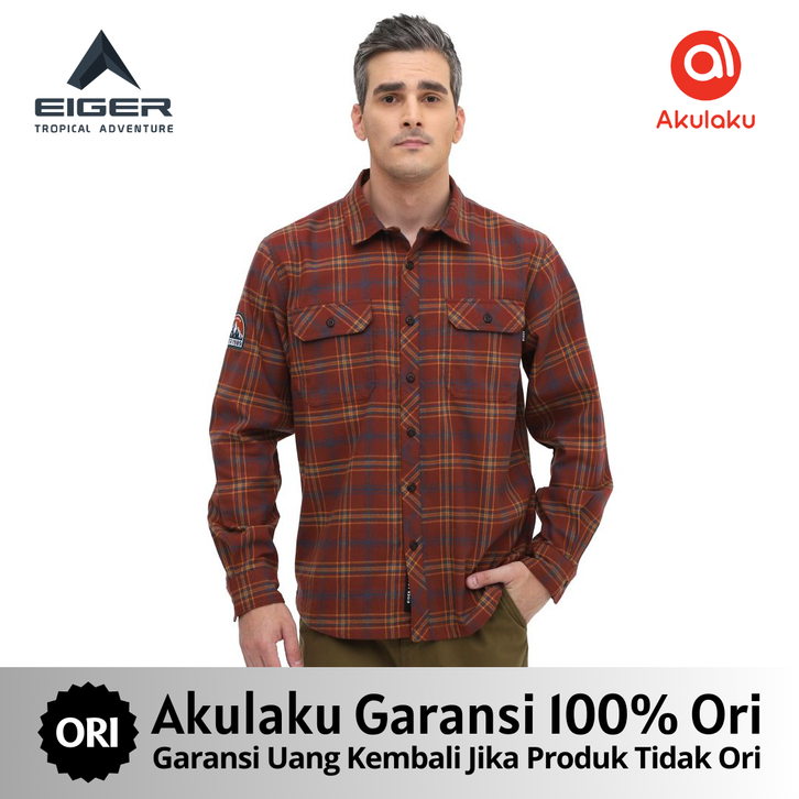 Kemeja Flannel Eiger Lengan Panjang Original 86 . E.X Warna Hijau Maroon