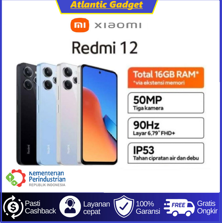 (Pasti Ori) Hp Xiaomi Redmi 12 8/256GB | MediaTek Helio G88 | 50MP Triple Kamera | Garansi Resmi