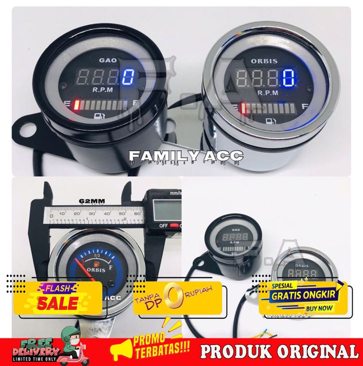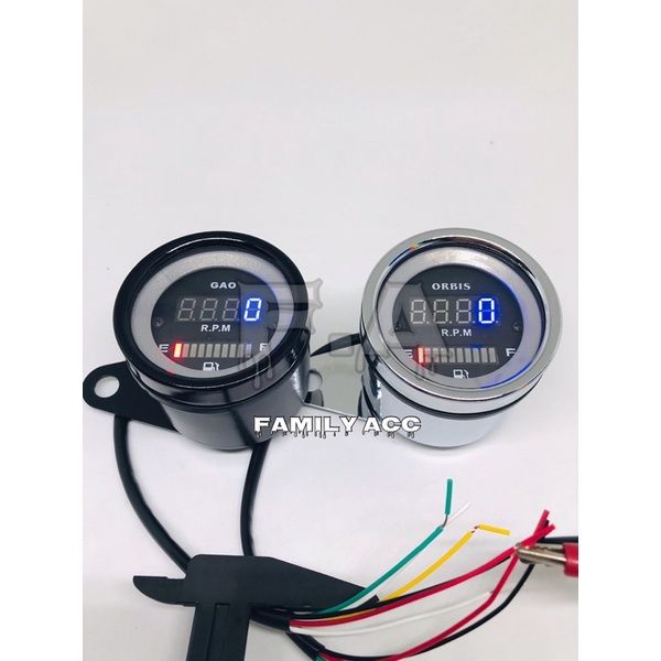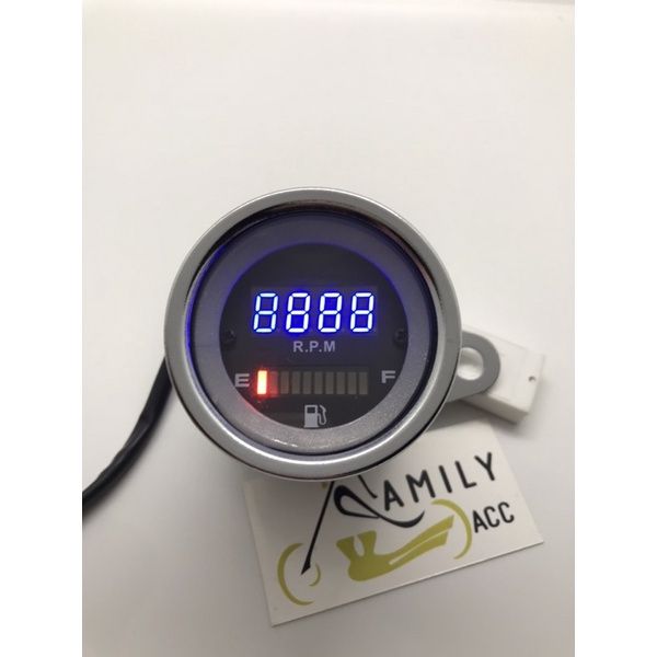 SPEEDOMETER BULAT 2IN1 DIGITAL RPM PLUS FUEL METER/ AMPER BENSIN UNTUK SEMUA JENIS MOTOR CUSTOM