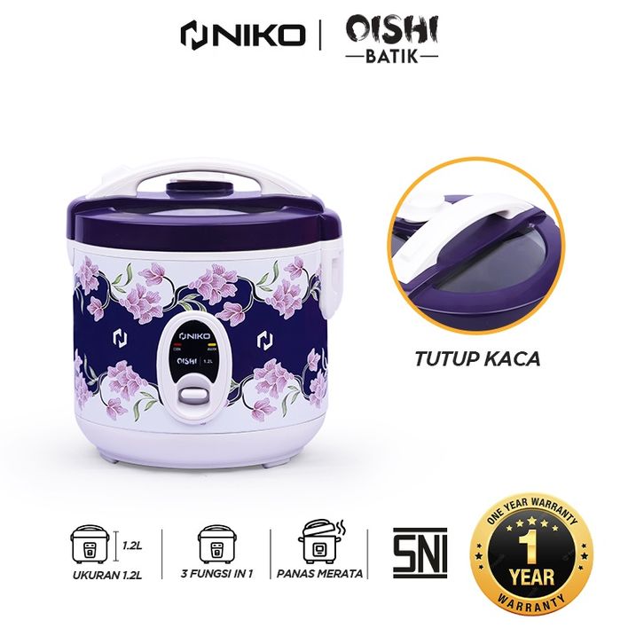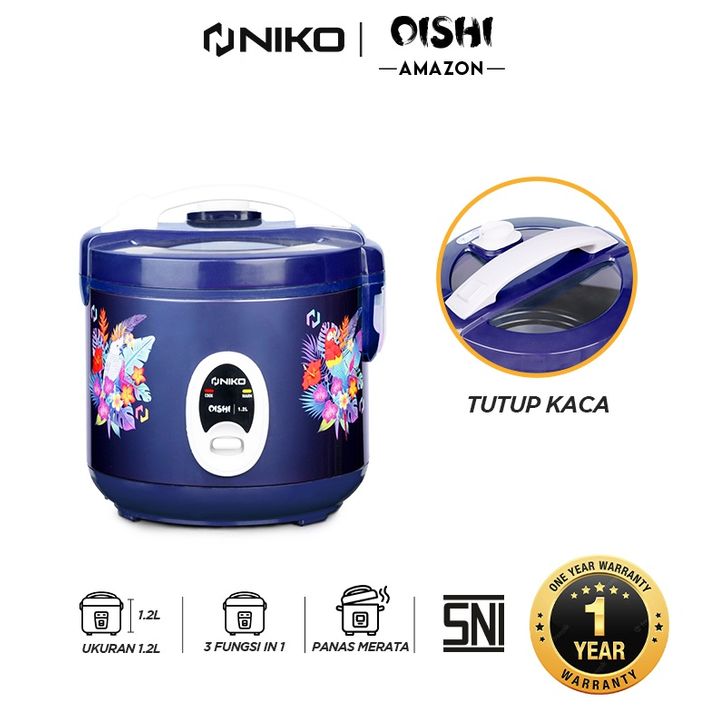 Rice cooker / Niko Rice Cooker Tutup Kaca Oishi Landmark Batik Amazon / Magic Com 1.2 Liter 3 in 1 Bonus Gelas Ukur |