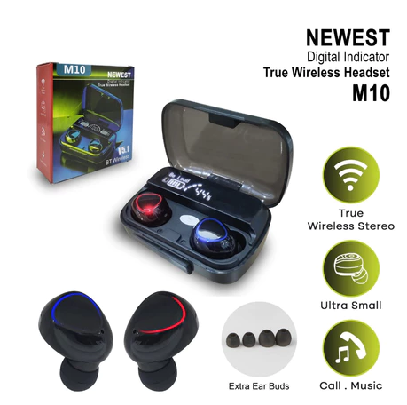 Tws True Wireless M10 Handsfree Headset Bluetooth Full Bass Stereo 3500 Mah Power Bank Original