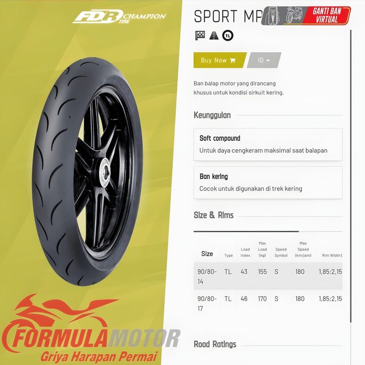90/80-17 Ban FDR MP27 MP 27 Tubeless - Ban Motor Balap/Racing Ring 17 Tubles Free Pentil Tubles