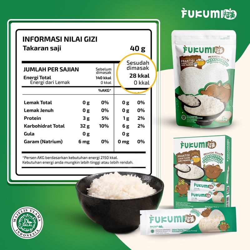 FUKUMI BERAS PORANG BOX SACHET - SHIRATAKI/KONJAC RICE