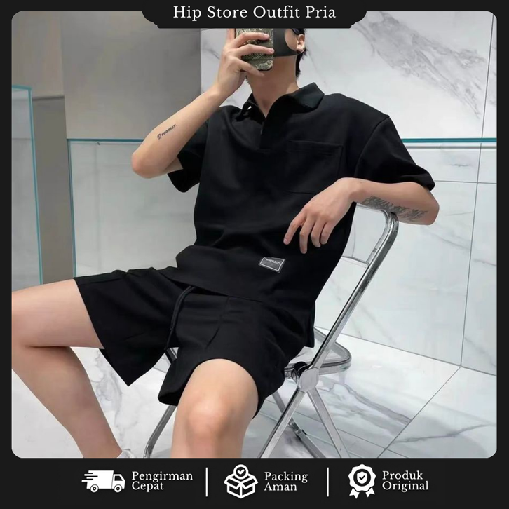 BAJU SET PRIA KAOS POLO OVERSIZE & CELANA PENDEK BAHAN PREMIUM | BAJU SANTAI PRIA BAJU KASUAL PRIA KEKINIAN