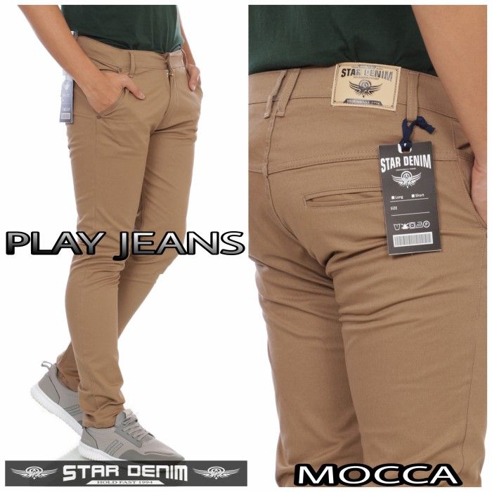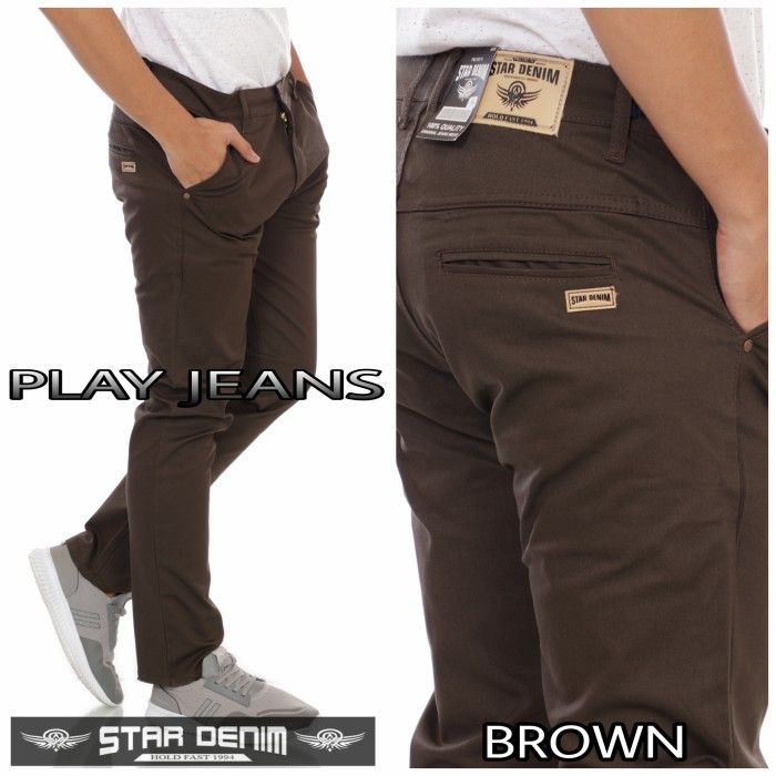 celana chino panjang pria / chino jumbo original brand star denim - Cokelat, (27-28)