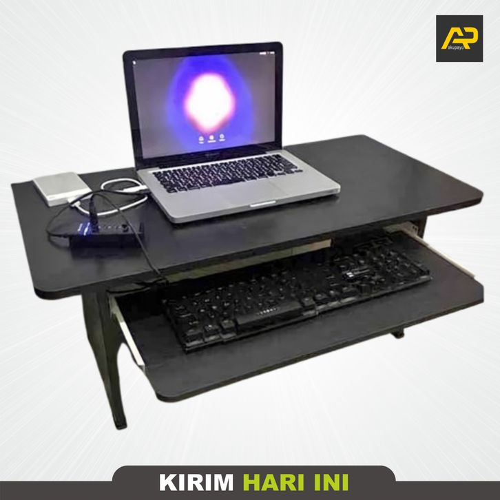 Meja laptop meja kerja komputer minimalis hitam kayu natural