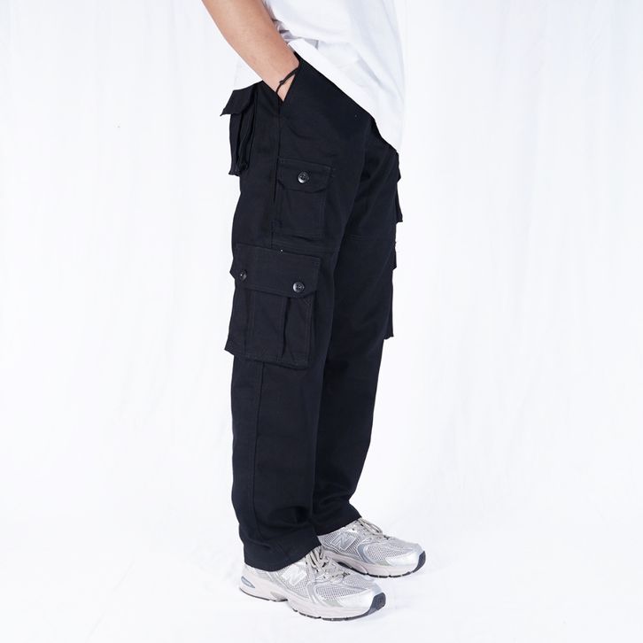 CELANA CARGO PANJANG PRIA DENGAN SAKU LEBIH NVSR LONG CARGO PANTS EXTRA POCKET BLACK
