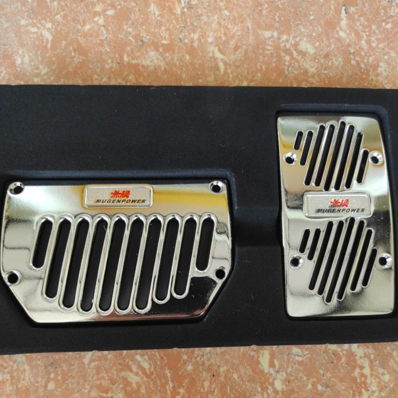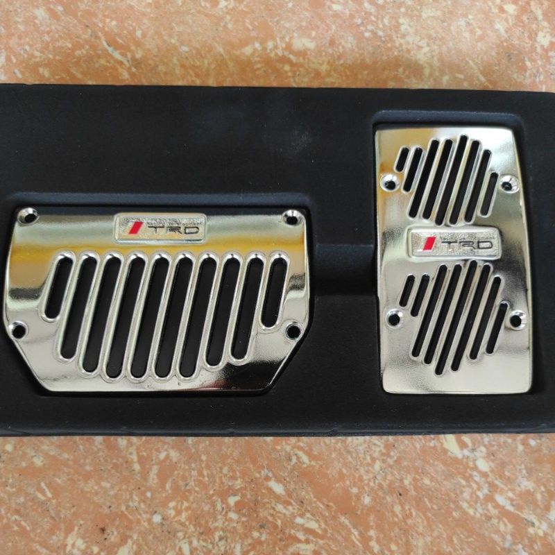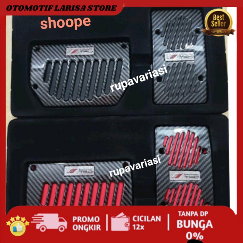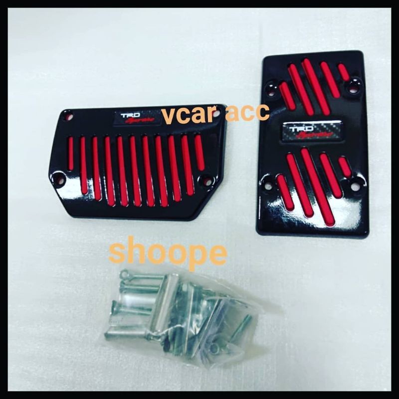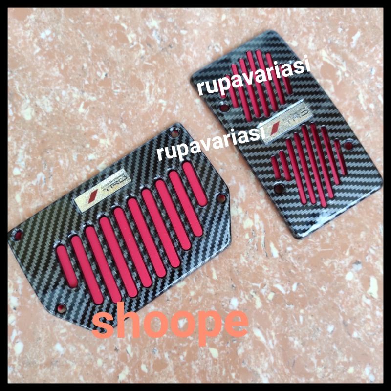 COVER PEDAL GAS + INJAKAN REM PEDAL PADS MOBIL MATIK MATIC RACING MOTIF CARBON LOGO TRD MUGEN MOMO HITAM BESI UNIVERSAL